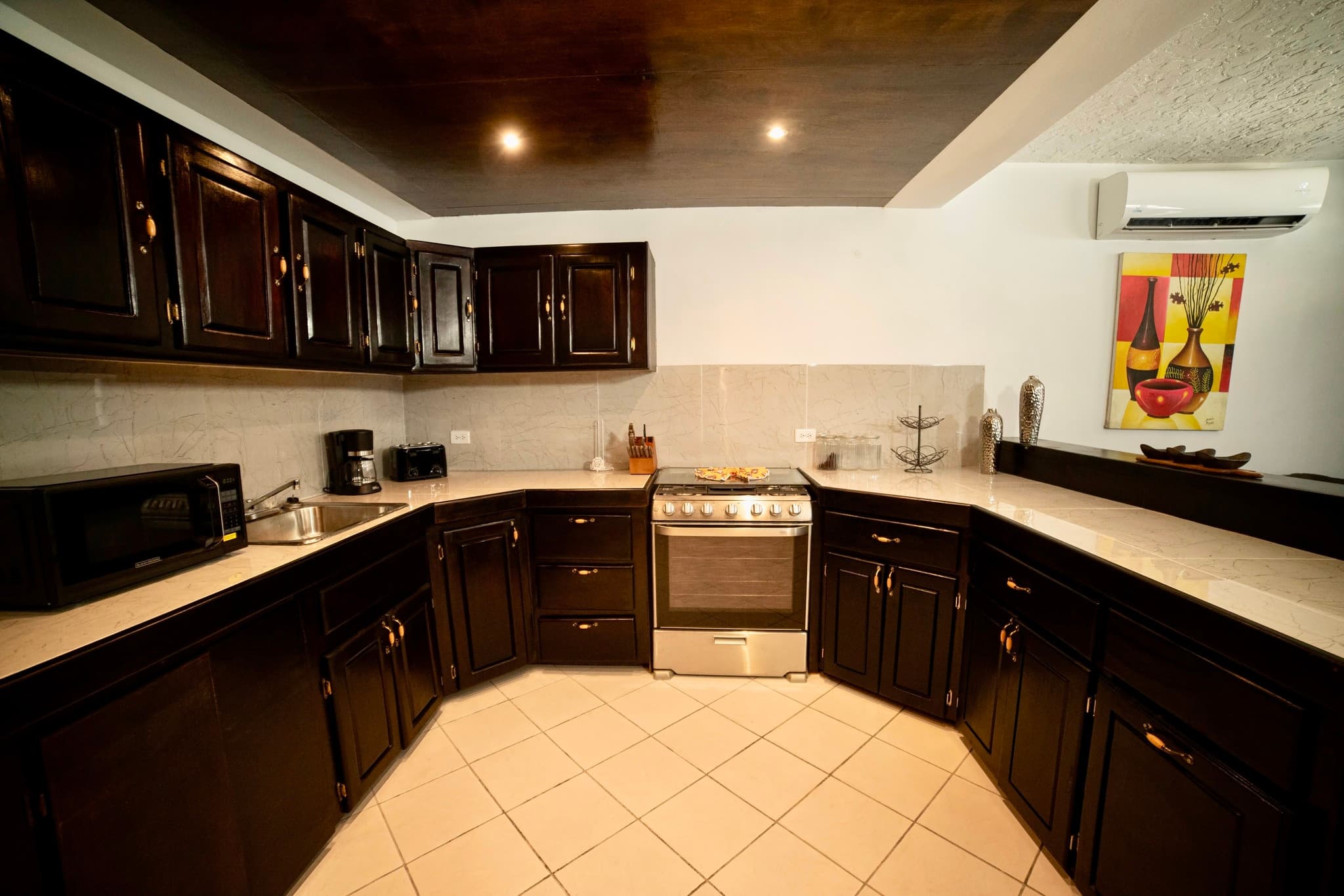 This beautifully decorated apartment at Corona del Mar Hotel in San Pedro, Belize features tropical vibes throughout. Enjoy a cozy living room, a fully equipped kitchen perfect for home-cooked meals,a bathroom, and a patio for enjoying the sunrise - all designed for comfort and relaxation.